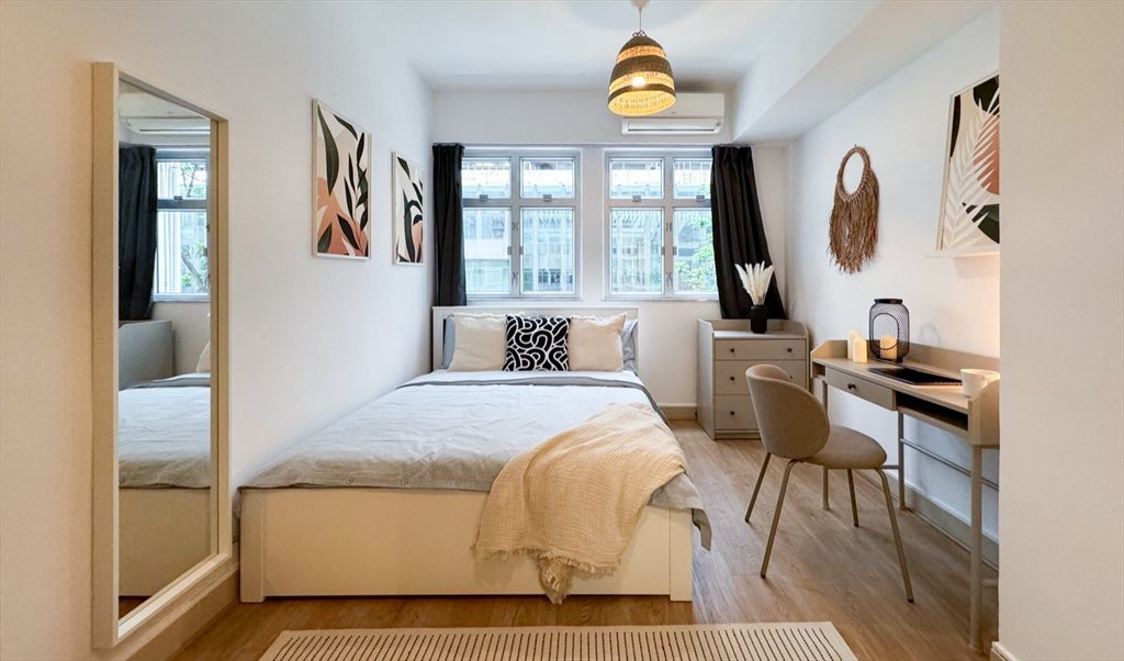 Fully furnished room in a renovated apartment in Great George Building, 27 Paterson Street, Causeway Bay.