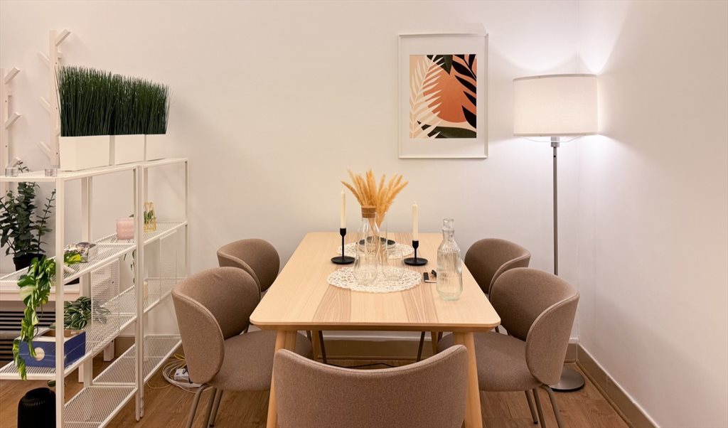New washing machine, refrigerator, new microwave, iron and ironing board, clothes dryer. The room has a decently sized wardrobe, a work desk, a bed with a new mattress, mattress protector, bed linen / sheets. All included in the price.