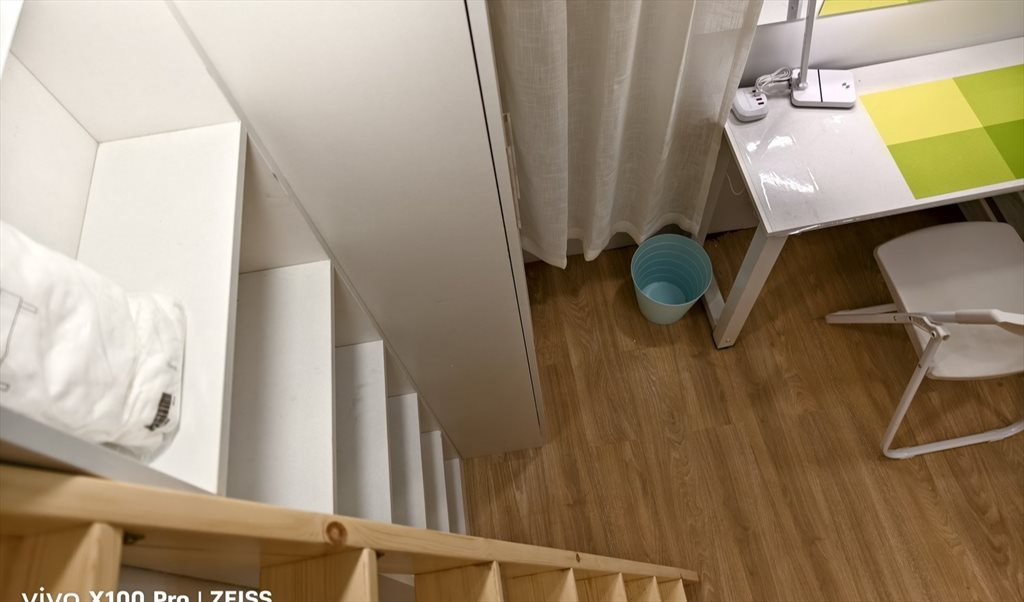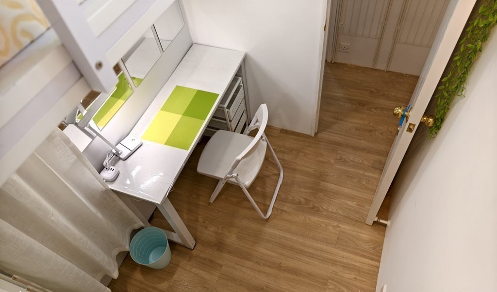 Regular cleaning service provided in common area. Wardrobe, desk, bed, book shelf ,chair, shoebox, curtain for each room.
