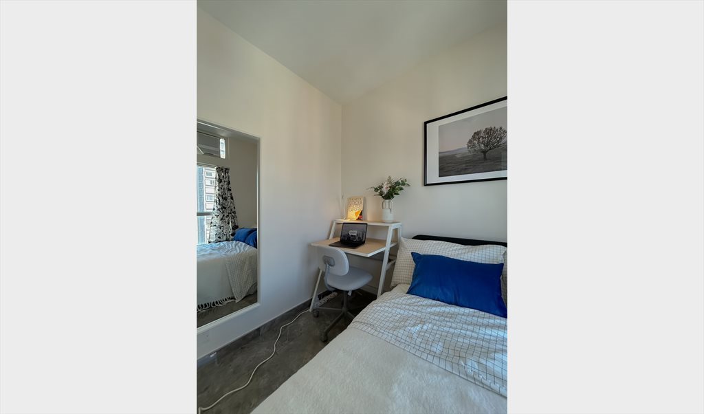 ✔️ Furnished room with small double bed; includes desk + chair — ideal for work/study