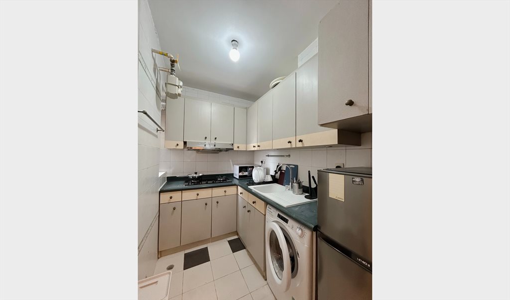 • Kitchen: Fridge, cooker, microwave, washing machine (no drying function)