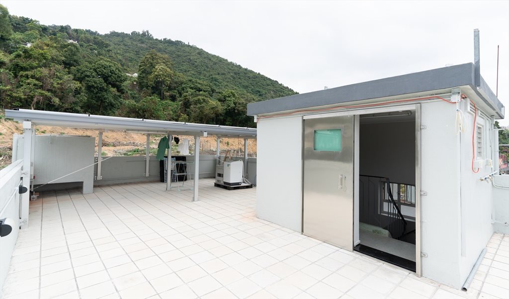Shared laundry facilities and chilling space on rooftop